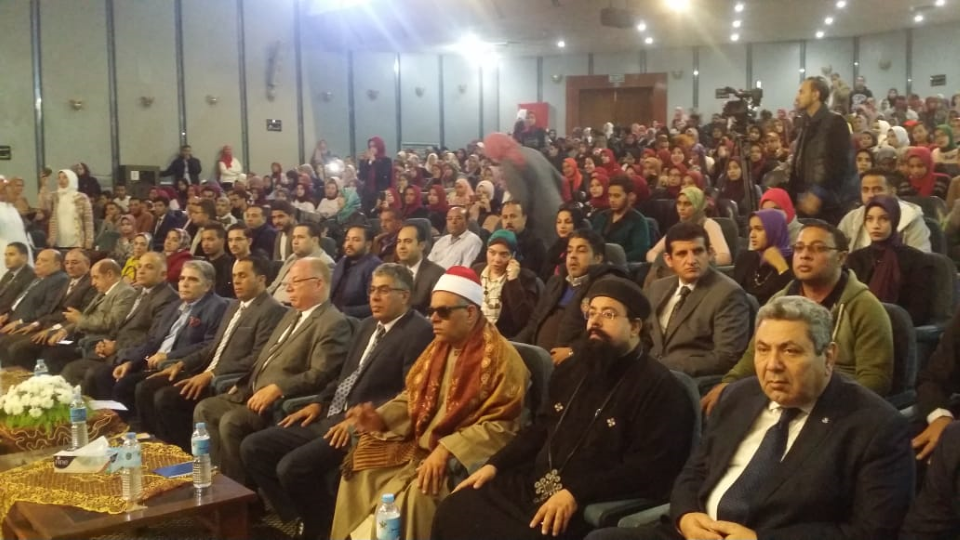 الكاتب الصحفى / عماد الدين حسين -رئيس تحرير جريدة الشروق وممثلى الأوقاف والكنيسة والساده النواب وعمداء الكليات وأعضاء هيئة التدريس والعاملين بالجامعة والطلاب .