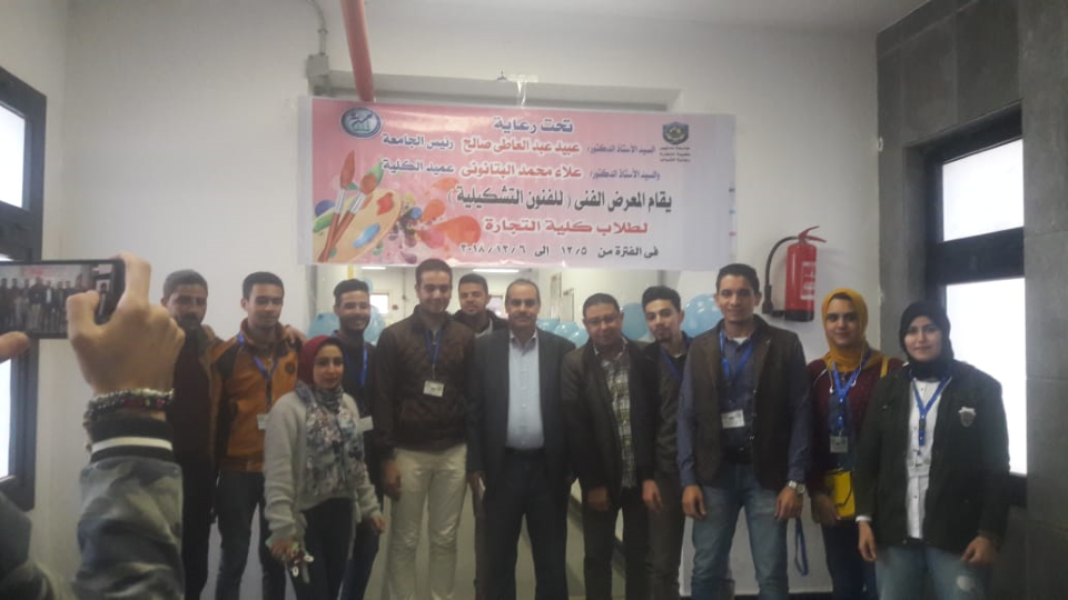 بإفتتاح المعرض الفني للفنون التشكيلية بكلية التجارة والذي يقام الفترة من12/5 وحتى 2018/12/6