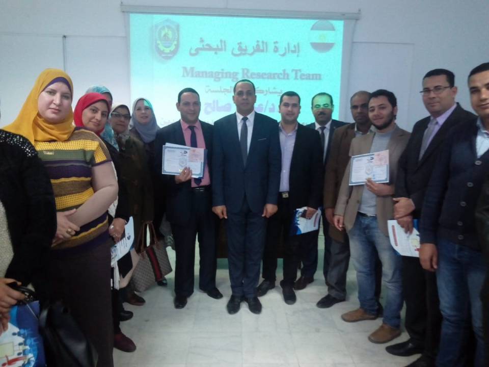 وهذا تقديرا لمشاركتهم بدورة " إدارة الفريق البحثى " ولجهودهم المبذولة في النهوض بالبحث العلمي .