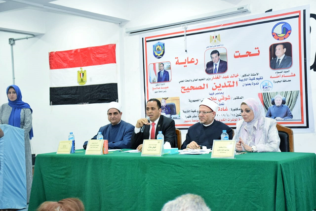 لإلقاء ندوة حول التدين الصحيح . يوم الإثنين الموافق 15 أبريل بقاعة الإجتماعات بكلية التربية بإشراف الأستاذة الدكتورة / غادة غتوري - قائم بعمل عميد كلية التربية