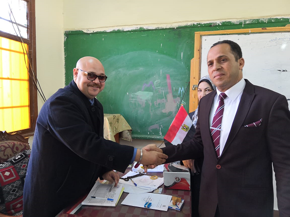 مستقبلاُ أعضاء اللجنة بتوزيع الأعلام والشيكولاتة فى اليوم الثاني للإستفتاء الموافق الأحد ٢١ ابريل ٢٠١٩ بالمدرسة الحديثة الإعدادية بنات بدمنهور لجنة رقم ٣٦