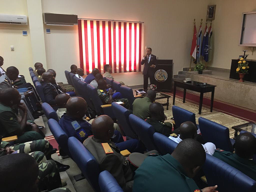 بإلقاء محاضرة عن الإستراتيجية والأمن القومى للفيف من قادة الجيوش للدول الأفريقية من ٢١ دولة من القارة الأفريقية والمتواجدين حاليا بمصر .