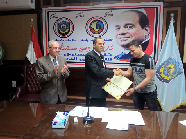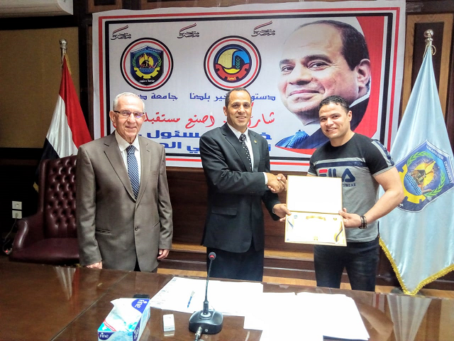 رئيس جامعة دمنهور يكرم الباحث / محمد عبد المولي سلومه بمجلس الجامعة ...