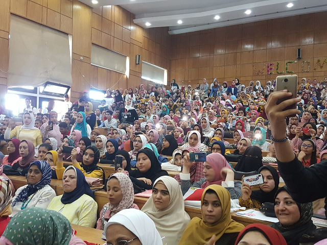 وبحضور نواب رئيس الجامعة وعمداء ووكلاء الكليات وطلاب الجامعة بقاعة المؤتمرات بكلية التربية بالمجمع النظرى بالأبعادية .
