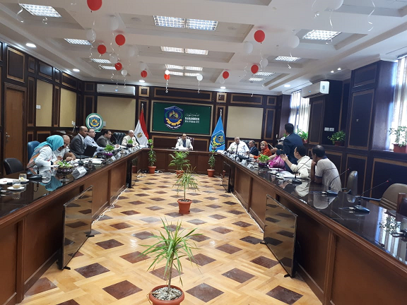 وبحضور نواب رئيس الجامعة وعمداء الكليات ووكلاء الكليات لشئون التعليم والطلاب اليوم الخميس الموافق ٢٦ سبتمبر ٢٠١٩ بقاعة الإجتماعات بإدارة الجامعة .