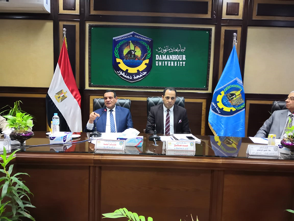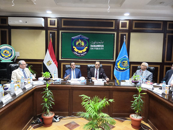 إجتمع مجلس جامعة دمنهور برئاسة الأستاذ الدكتور / عبيد صالح - رئيس الجامعة وحضور معالى اللواء / هشام آمنة - محافظ البحيرة.