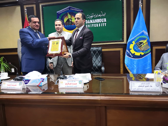 وتم إهداء معالى المحافظ درع مقدم من طلاب بيطري جامعة دمنهور تكريما وتقديرا لسيادتة .