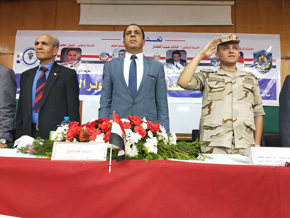 والمقدم / إبراهيم مكاوي - نائب المستشار العسكري لمحافظة البحيرة ، و المقدم / أكرم توفيق - مدير إدارة التربية العسكرية بجامعة دمنهور.