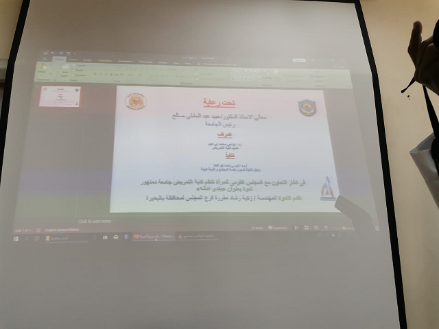 وقدم عبيد الشكر والتقدير للمهندسة زكية والوفد المرافق وكذلك القائمين على تنظيم الحدث من عميد الكلية والوكلاء والطلاب.