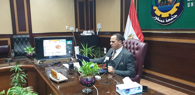 رئيس جامعة دمنهور يحاور الطلاب ويحل مشاكلهم من خلال التعليم عن بعد....