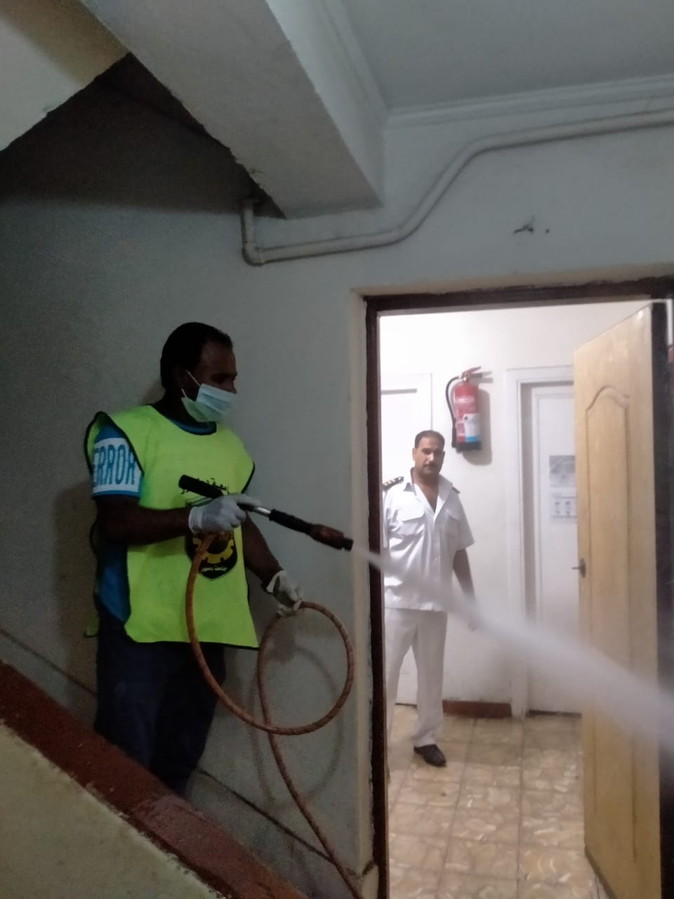 كما قامت بإستخدام وسائل ومعدات تعقيم وتطهير ذات معايير عالية لضمان تنفيذ كافة أعمال الرش بأعلى جودة وأكبر مساحة ممكنة ،