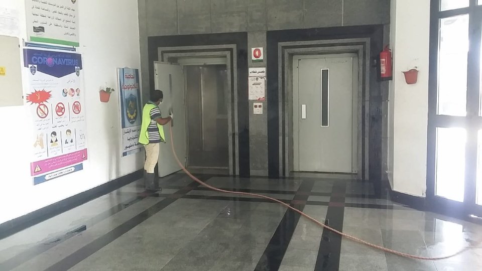 ومخارج ومداخل الكليه بالكامل لما يقرب من الساعتين تطهير وتعقيم .