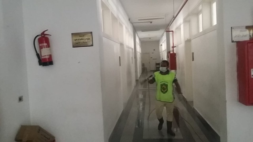 وقد شملت أعمال التعقيم والرش والتطهير الشوارع الداخلية للحرم الجامعي والمباني الإدارية والكليات المختلفة والمعامل وتعقيم المبنى الإداري.