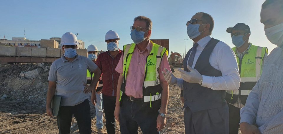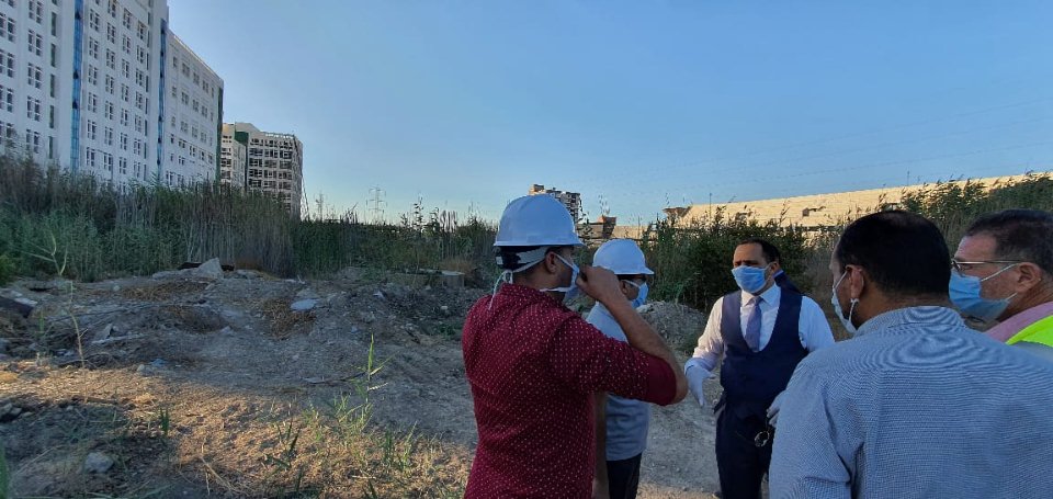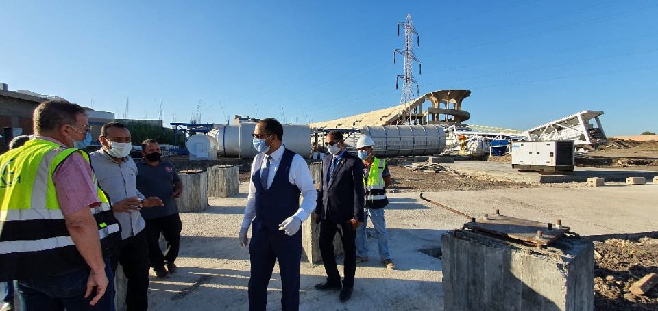 لمتابعة الأعمال الجارية بأرض المشروع حيث تم بدء تثبيت محطة الخلط المركزية للخرسانة