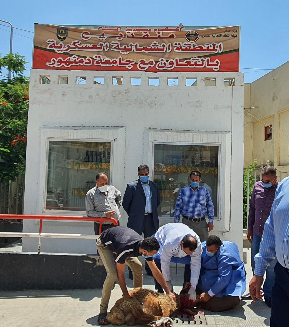 قام الأستاذ الدكتور / عبيد صالح - رئيس جامعة دمنهور بتوفير اللحوم الطازجة بقري وضأن من خلال ذبح عجلين بسعر ٨٠ جنيه للكيلو وخروفين ،