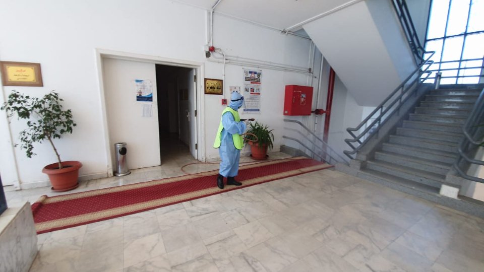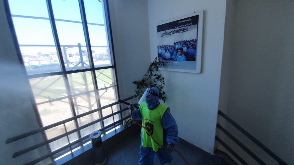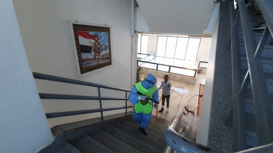 حيث نفذت الجامعة يوم الإثنين الموافق 29 يونيو تطهير ورش مبنى إدارة الجامعة .