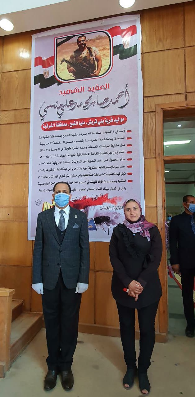 وافتتحت قاعة الشهيد منسي الكبرى بالجامعة السيدة / منار سليم - زوجة الشهيد بحضور رئيس الجامعة ونوابه وكوكبة من المسؤولين والإعلاميبن.
