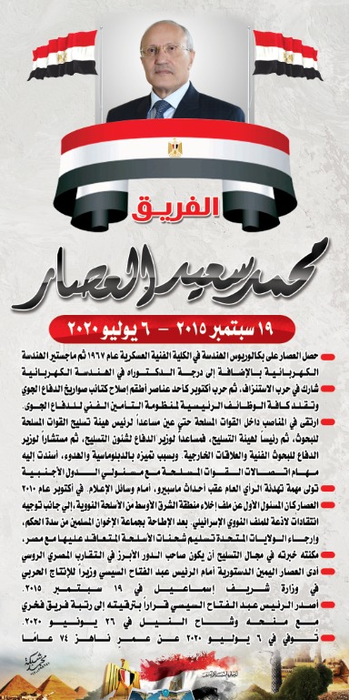 بالوقوف دقيقة حدادا على روح الفريق / محمد العصار - وزير الدولة للإنتاج الحربي الذي رحل عن عالمنا أمس .