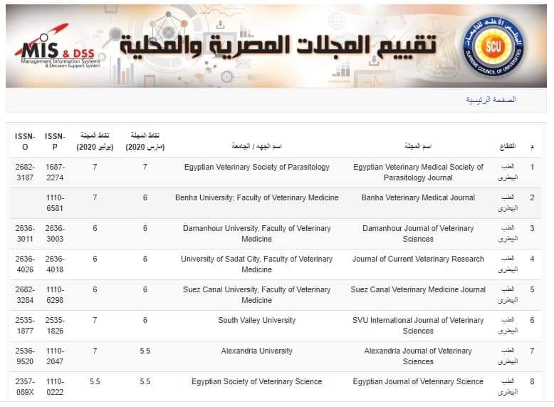 مجلة جامعة دمنهور للعلوم الطبية البيطرية تتصدر ترتيب المجلس الأعلى للجامعات ٢٠٢٠