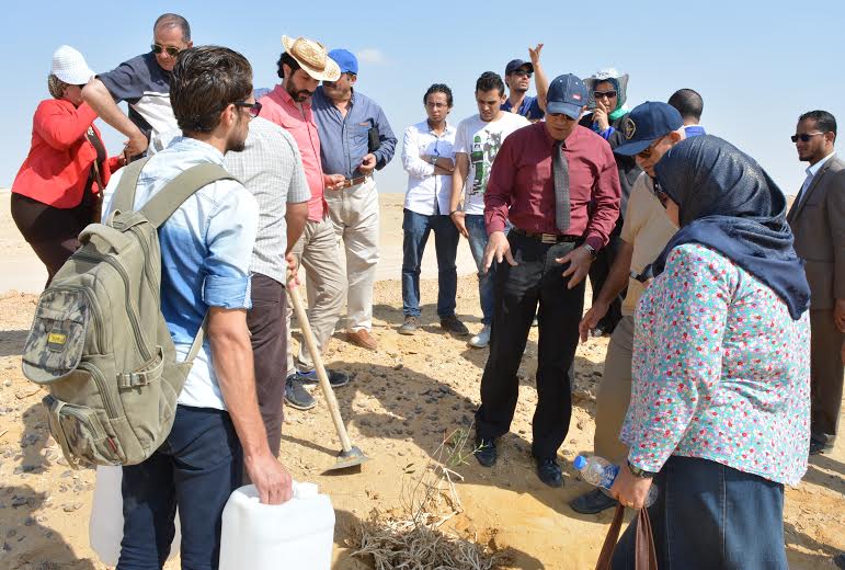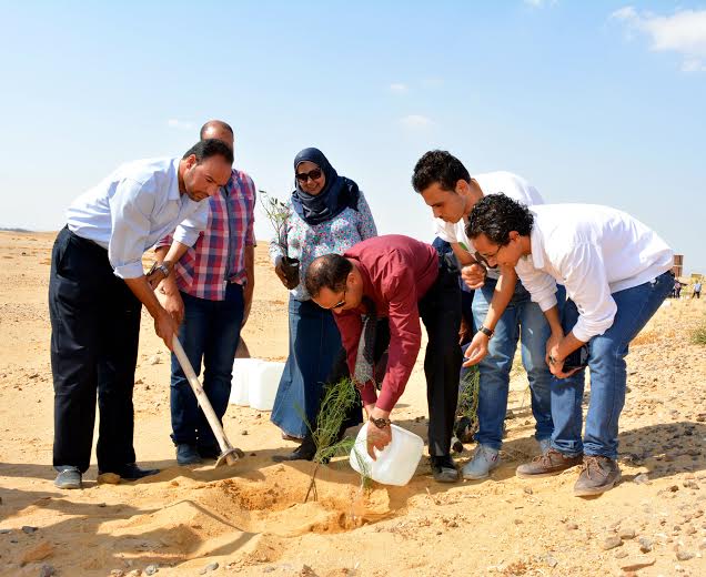في غرس أشجار الزينة والزيتون كإشارة البدء للإعلان عن بدء استثمار الجامعة للمزرعة البحثية بمنطقة وادي النطرون بالبحيرة.