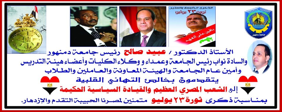رئيس جامعة دمنهور .... يتقدم بخالص التهانى القلبية للشعب المصرى العظيم