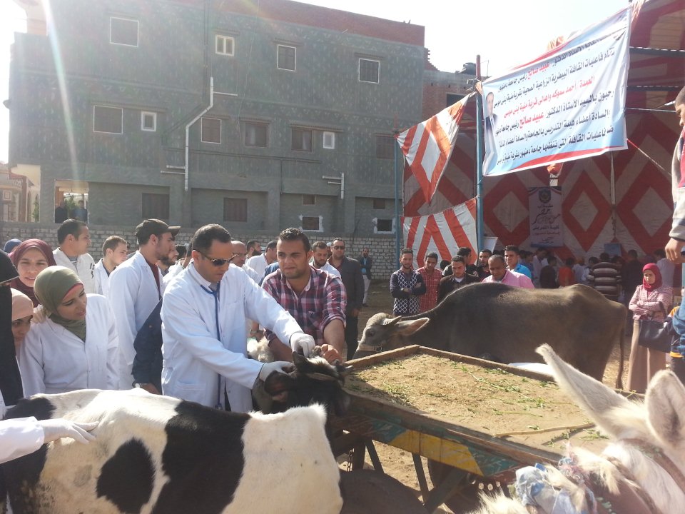 بدأت القافلة عملها من الساعة التاسعة صباحا حيث تم الكشف والفحص على العديد من الحيوانات من الابقار والجاموس الماعز اغنام و بقر دواب– جاموس) وتم علاج 15000 حاله