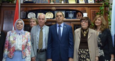 والأستاذة الدكتورة / نادية أندراوس (الأستاذ المتفرع بقسم اللغة الفرنسية) والأستاذة الدكتورة / غادة غتوري (عميد كلية التربية) والدكتور / فاروق التلاوي (محافظ البحيرة الأسبق)