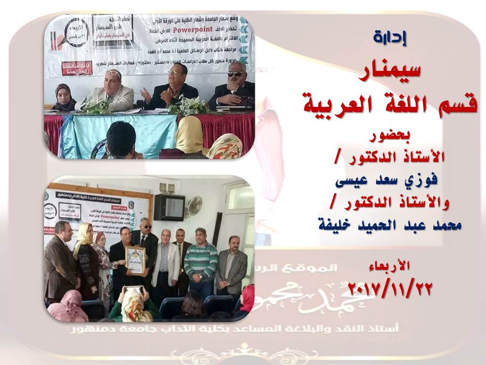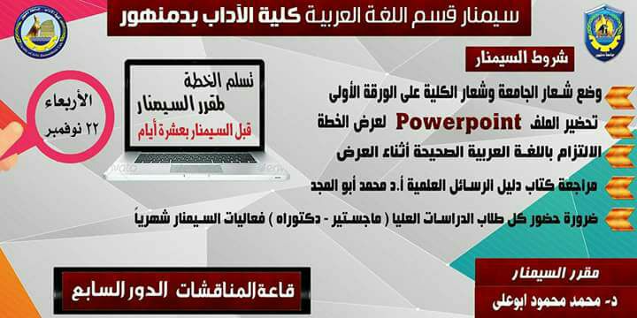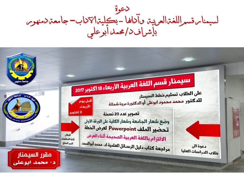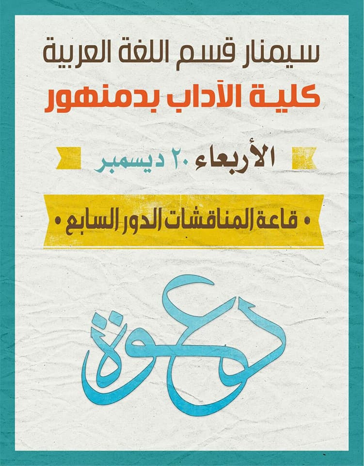 دعوة لحضور سيمنار قسم اللغة العربية - بكلية الآداب - جامعة دمنهور