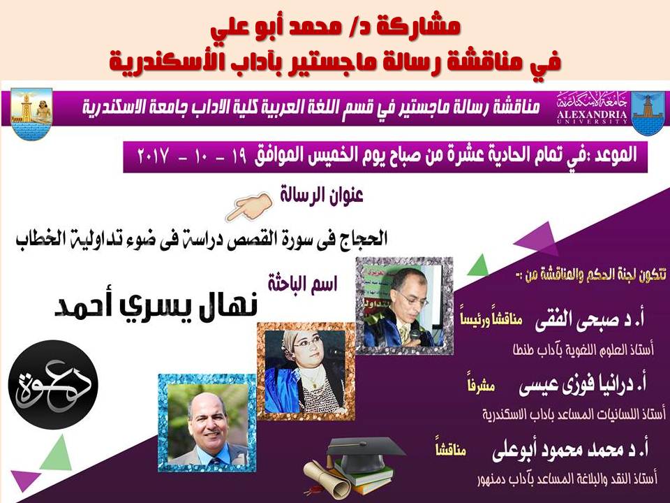 مناقشة اليوم بكلية الآداب - جامعة الإسكندرية